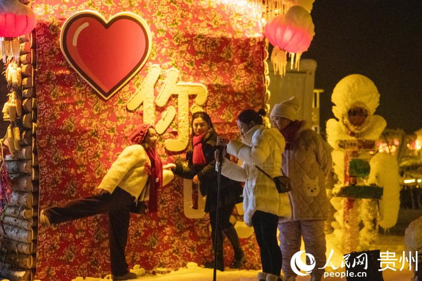 人民网六盘水1月9日电(黄小桃)1月7日晚,98栋覆雪木屋灯火温馨,红灯映雪、炊烟袅袅——这片位于贵州省六盘水市钟山区梅花山景区内的“南国雪乡”,成为游客争相打卡的冬日秘境。
