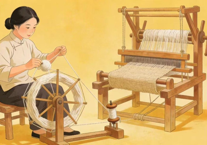 深秋,一朵朵如云的棉花从田里收回到院落。这时候,冬小麦已经种下,地里没什么活计了,天气也逐渐冷起来,进入了漫长的冬闲。冬闲,各家的主妇们却闲不下来。她们要把棉花纺成棉线,然后再织成一匹匹棉布。